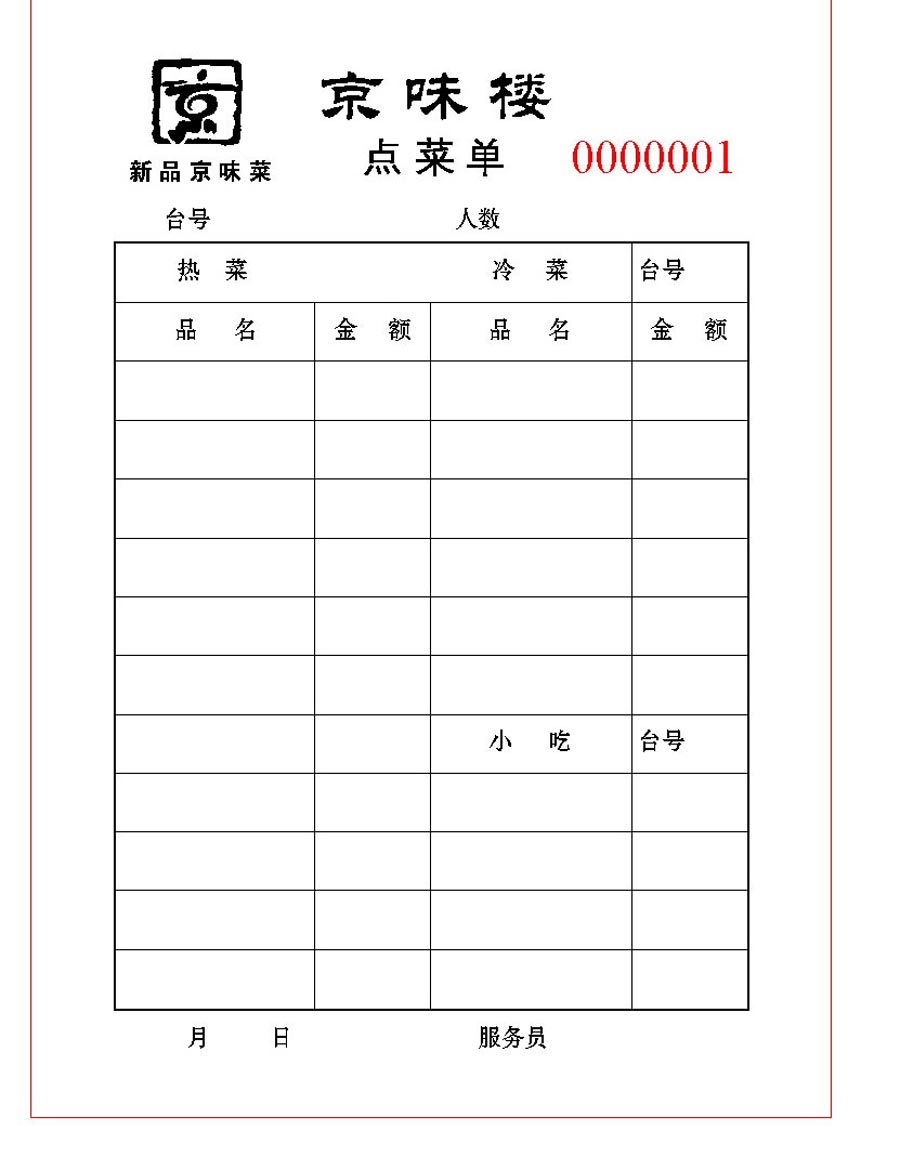 餐厅无碳复写系列