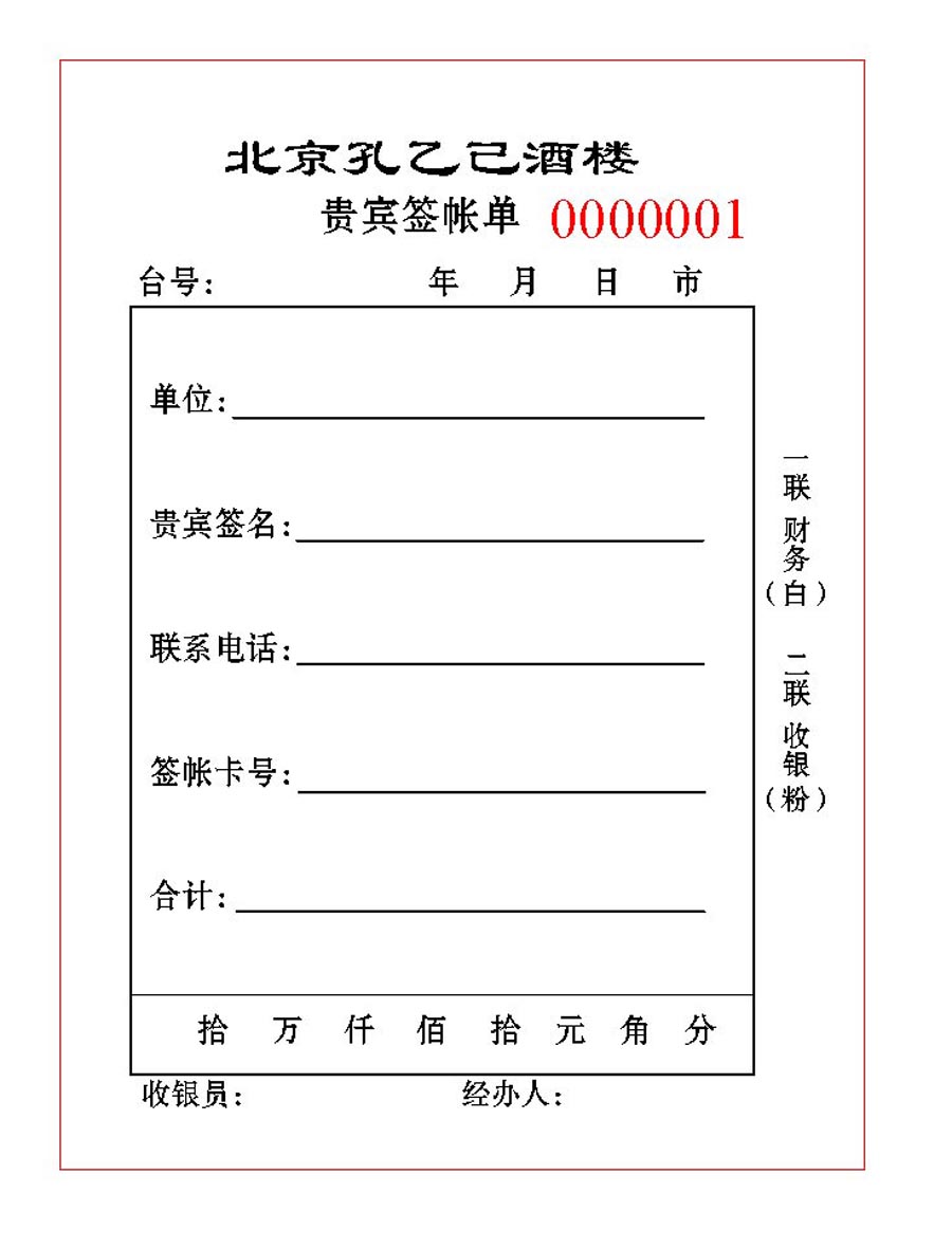孔乙己贵宾签帐单