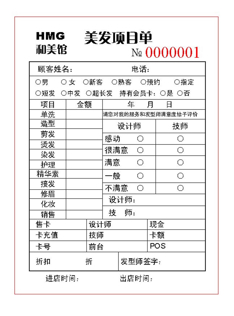 和美馆美发项目单