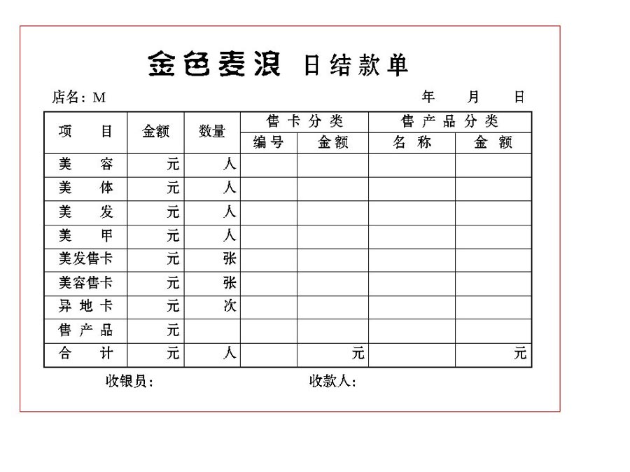 金色麦浪日结款单