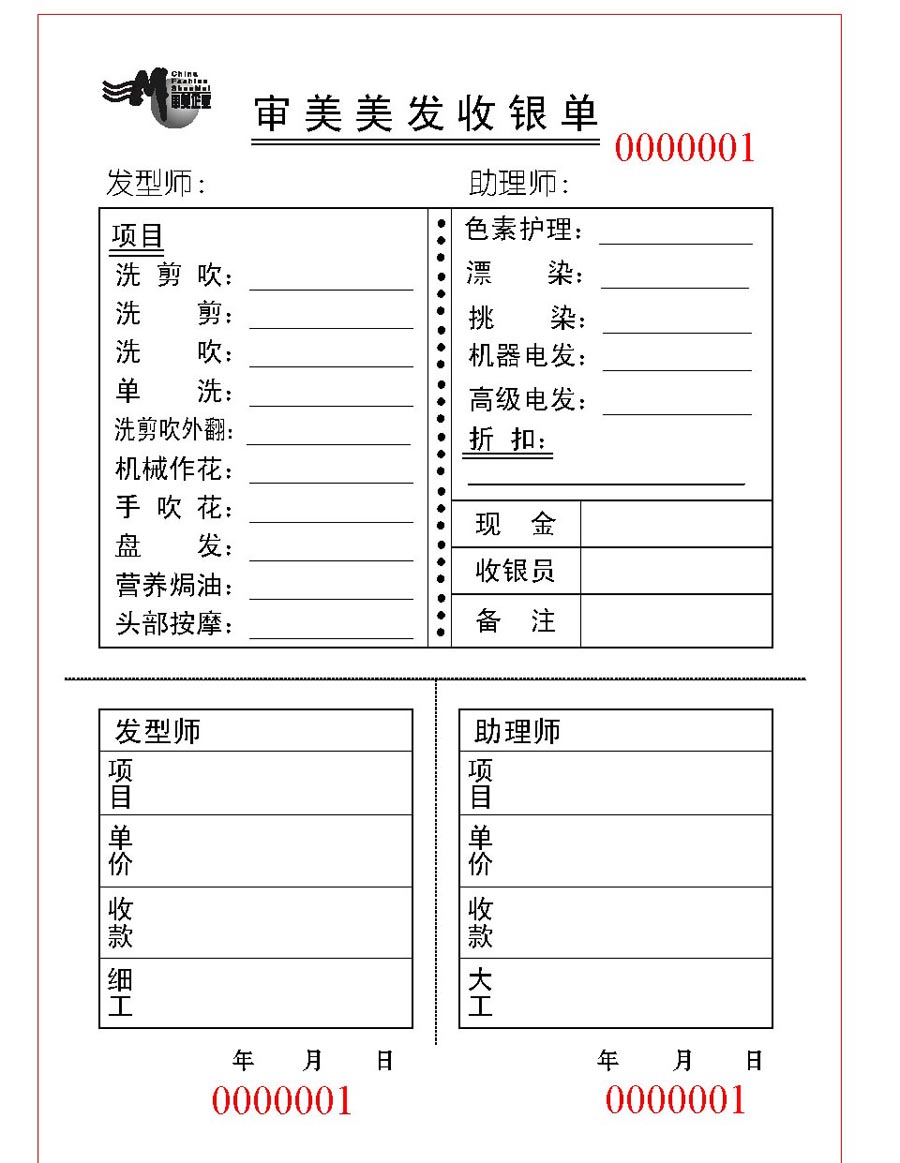 审美 美发收银单