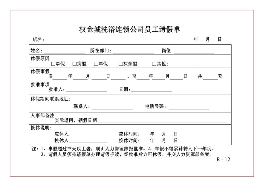 权金城 员工请假单